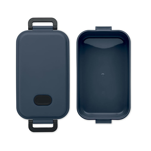 Obědová krabička z recyklovaného plastu se vzduchotěsným víčkem, silikonovým ventilem a dvěma bočními přezkami. Objem 800 ml, tmavě modrá
