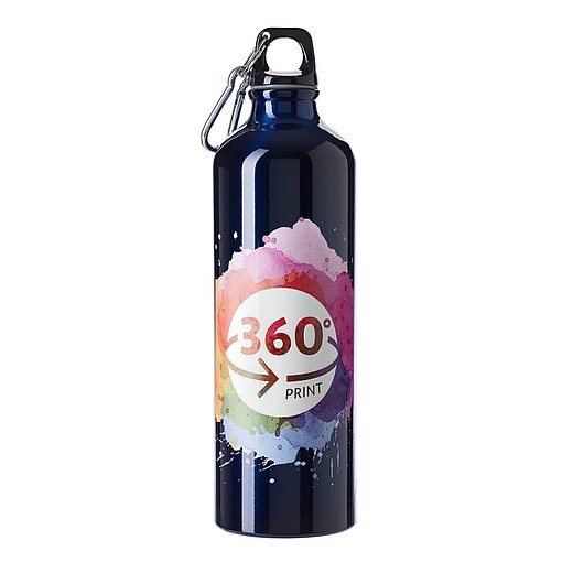 Hliníková láhev o objemu 750 ml s karabinou a kroužkem na klíče. Vhodná pouze pro studené nápoje. Rozměry: O 7,3 × 25 cm.
