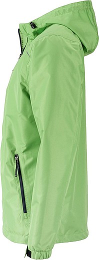 Větruodolná a voděodolná (3.000mm vodní sloupec) s TPU povlakem, prodyšná (1.500g/m2 za 24h), nastavitelná kapuce s elastickou šňůrkou, ochrana brady, 2 boční kapsy se zipem, vnitřní kapsa, podlepené švy, zipy v kontrastní barvě, přístup k zušlechtění na zádech, reflexní detaily (bez ochranné funkce) na kapuci, vpředu a vzadu . Materiál: Vnější strana: 100% polyester, uvnitř: 100% polyester