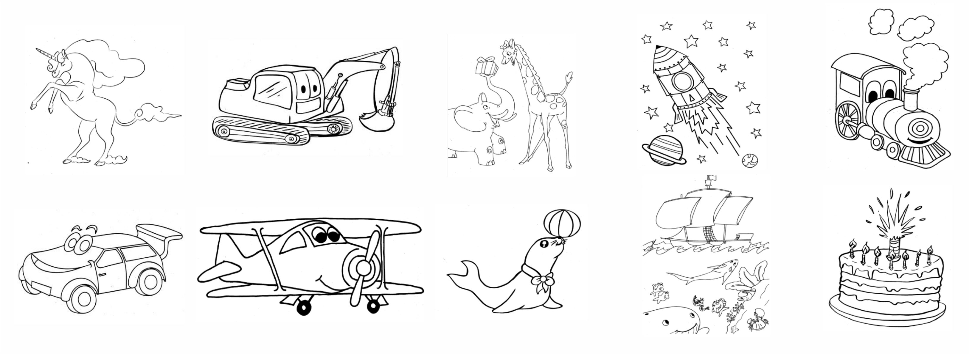 Sada 6 ks pastelek, guma, ořezávátko a 30 stran omalovánek v deskách z natur papíru.