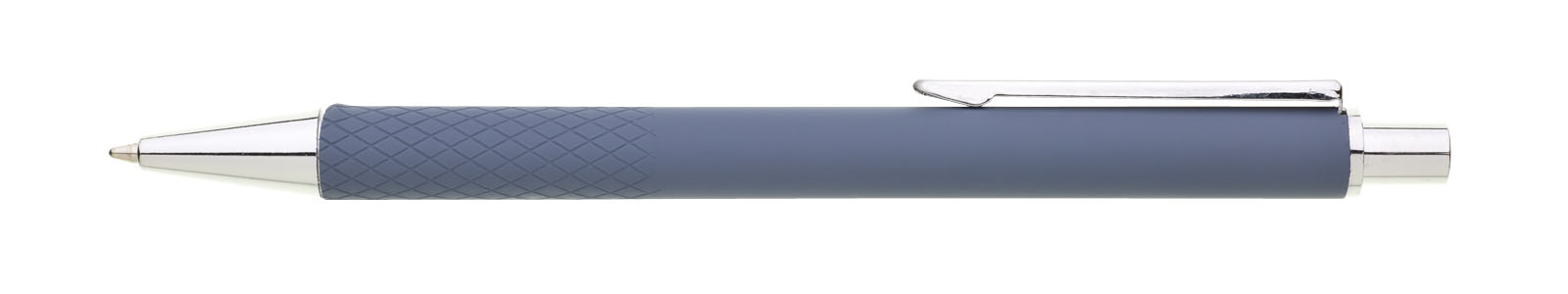 Elegantní propiska s modrým pogumovaným tělem v moderním odstínu a chromovými doplňky. Náplň X20 modře píšící. Kolekce DESIGN.