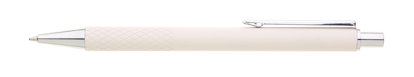 Elegantní propiska s béžovým pogumovaným tělem v moderním odstínu a chromovými doplňky. Náplň X20 modře píšící. Kolekce DESIGN.