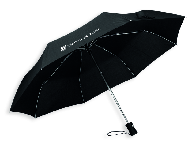 Skládací polyesterový deštník se systémem open/close, plastovou rukojetí, obalem a pouzdrem, 8 panelů.
