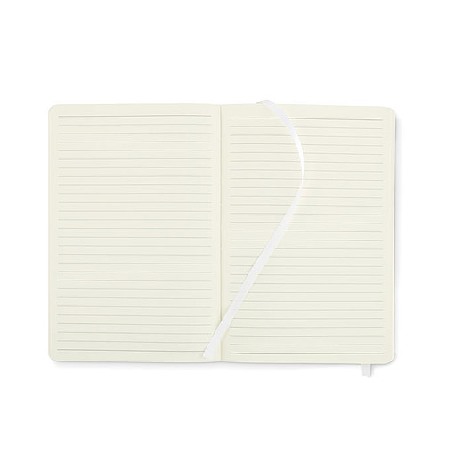 Zápisník A5 s měkkými deskami z recyklovaného polyuretanu (81% recyklovaný polyester a 19% PU). 160 linkovaných stran z recyklovaného papíru. Elastická uzavírací páska a záložka. Vnitřní zadní kapsa. Rozměry: 20,8 × 1 × 14 cm.