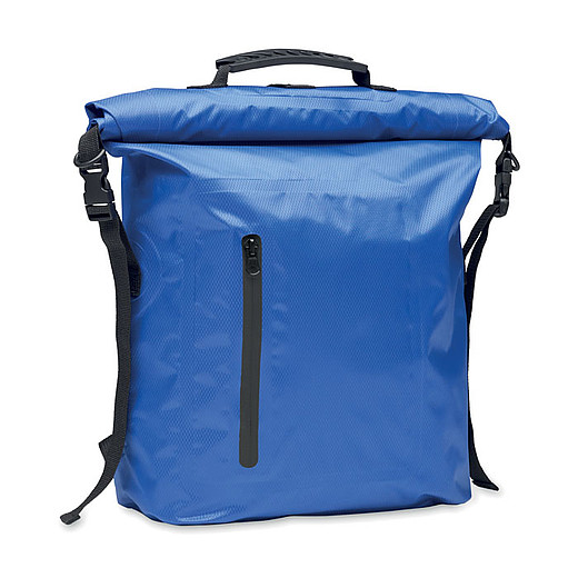 Voděodolný rolovací batoh z recyklovaného 210D polyesteru. Objem 30 litrů. Rozměry: 37 × 55 cm.