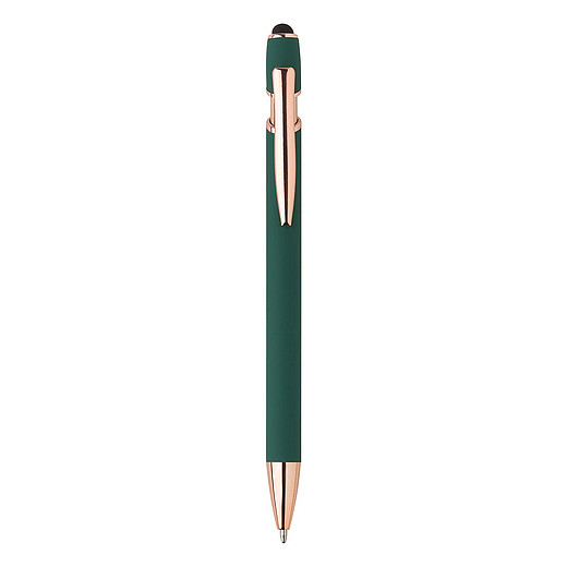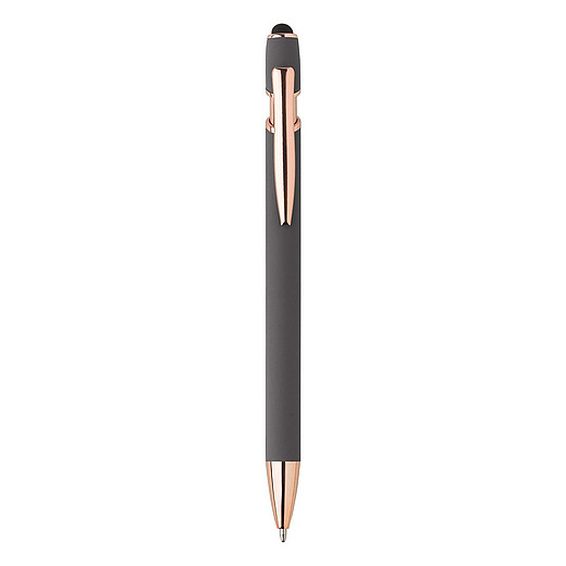 Plastové kuličkové pero s modrou náplní. Tělo pera má matný povrch zatímco špička, klip a tlačítko jsou lesklé. Na konci tlačítka je gumový stylus pro kapacitní displeje. Pero má zvýšenou hmotnost pro příjemnější pocit z psaní. Rozměry: O 1,1 × 14,8 cm.