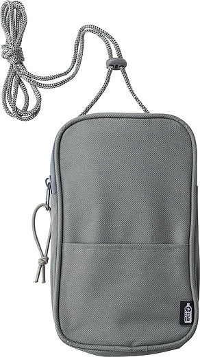 Taška přes rameno z 600D recyklovaného polyesteru s nastavitelnou šňůrkou. Jedna velká přihrádka na zip s gumičkou a vkládací kapsou. Zip má gumičkové táhlo. Rozměry: 30 × 12 × 2,5 cm.