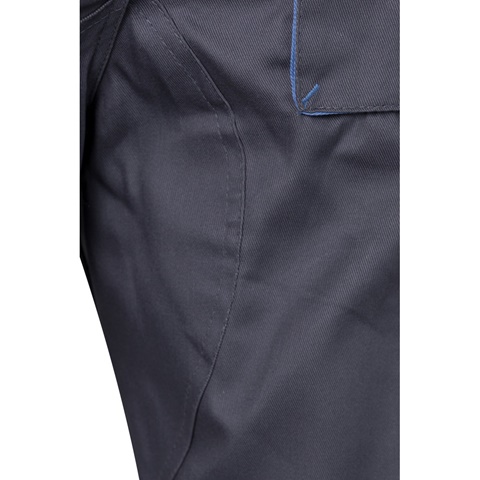Dvoubarevné keprové kalhoty s mnoha kapsami (200 g/m²), z bavlny (35 %) a polyesteru (65 %). S elastickým pasem a kontrastní barvou na klínech, stahování a prošívání. Obsahuje šest kapes: (2 francouzské kapsy, 2 boční klínové kapsy a 2 zadní klínové kapsy). Velikost: 34, 36, 38, 40, 42, 44, 46, 48, 50, 52, 54, 56, 58, 60