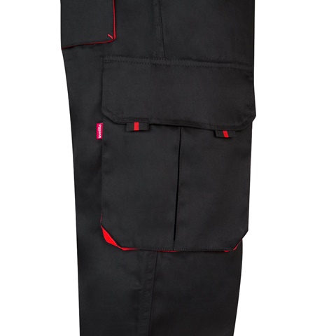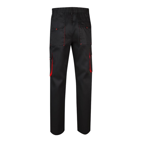 Dvoubarevné keprové kalhoty s mnoha kapsami (200 g/m²), z bavlny (35 %) a polyesteru (65 %). S elastickým pasem a kontrastní barvou na klínech, stahování a prošívání. Obsahuje šest kapes: (2 francouzské kapsy, 2 boční klínové kapsy a 2 zadní klínové kapsy). Velikost: 34, 36, 38, 40, 42, 44, 46, 48, 50, 52, 54, 56, 58, 60