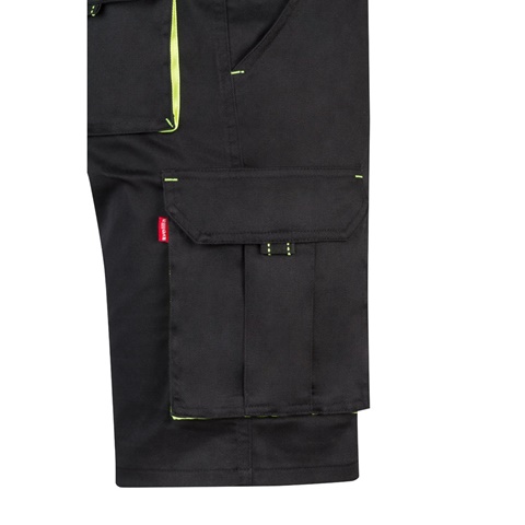 Dvoubarevné strečové bermudy s více kapsami (240 g/m²), z bavlny (46 %), EME (38 %) a polyesteru (16 %). S elastickým pasem, kontrastní barvou na klínech, stahovacím poutkem a prošíváním a látkovým zesílením vzadu. Obsahuje šest kapes (2 francouzské kapsy, 2 boční klínové kapsy a 2 zadní klínové kapsy). Velikost: 34, 36, 38, 40, 42, 44, 46, 48, 50, 52, 54, 56, 58, 60