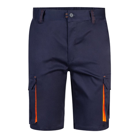 Dvoubarevné strečové bermudy s více kapsami (240 g/m²), z bavlny (46 %), EME (38 %) a polyesteru (16 %). S elastickým pasem, kontrastní barvou na klínech, stahovacím poutkem a prošíváním a látkovým zesílením vzadu. Obsahuje šest kapes (2 francouzské kapsy, 2 boční klínové kapsy a 2 zadní klínové kapsy). Velikost: 34, 36, 38, 40, 42, 44, 46, 48, 50, 52, 54, 56, 58, 60