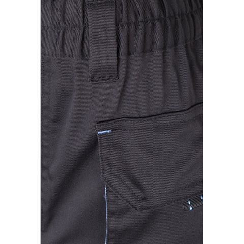 Dvoubarevné strečové kalhoty s mnoha kapsami (240 g/m²), z bavlny (46 %), EME (38 %) a polyesteru (16 %). Slim Fit, elastický pas a kontrastní barva na klíncích, stahování a prošívání. Obsahuje šest kapes (2 francouzské kapsy, 2 boční klínové kapsy a 2 zadní klínové kapsy). Velikost: 34, 36, 38, 40, 42, 44, 46, 48, 50, 52, 54, 56, 58, 60