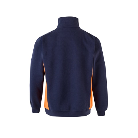 Dvoubarevná fleecová mikina (260 g/m²), z polyesteru (65 %) a bavlny (35 %). S vysokým límcem a polovičním zipem. S žebrovanými manžetami a lemem. Ošetření proti žmolkování. Boky a vnitřní strana límce v kontrastní barvě. Velikost: XS, S, M, L, XL, 2XL, 3XL