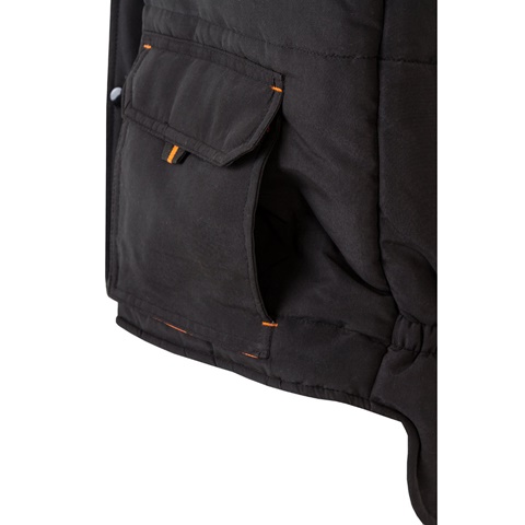 Dvoubarevná, vícekapsová prošívaná vesta (120 g/m²), z polyesteru (100 %). Zapínání na zip, skryté knoflíkovou légou. Elastický boční pas, větrovka u průramku. S měchem, stahováky a prošíváním v kontrastní barvě. Obsahuje sedm kapes (2 měchové kapsy na hrudi, 2 spodní měchové kapsy, 2 boční kapsy, 1 měchová kapsa na hrudi a 1 vnitřní kapsa). Velikost: S, M, L, XL, 2XL, 3XL