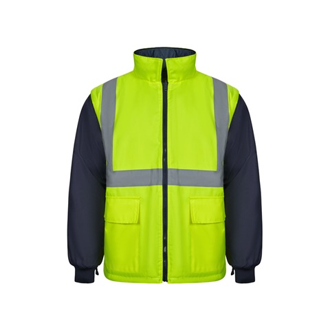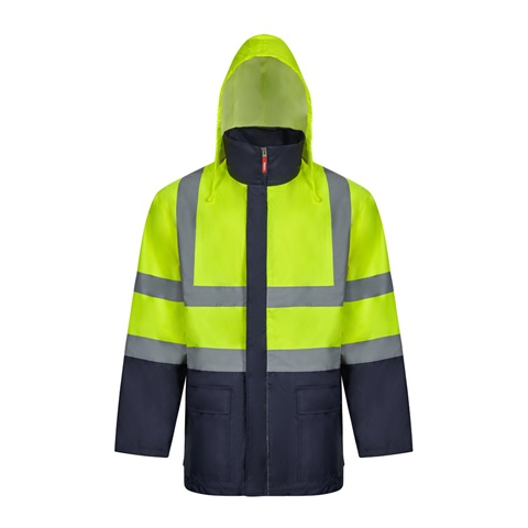 Dvoubarevná parka 4v1 (180g/m²), z polyesteru (100%) s PU zátěrem. Čtyři kusy v jednom: parka, pláštěnka, bunda a vesta.Parka/pláštěnka: se skrytým středovým zipem s légou, která se zapíná na suchý zip, reflexní pruhy na trupu, ramenou a rukávech a skrytá kapuce, se dvěma spodními kapsami.Bunda/vesta: s centrálním zipem, reflexními pruhy na trupu a ramenou, žebrovanými manžetami a odepínacími rukávy. Se třemi kapsami (2 spodní kapsy a 1 vnitřní kapsa). Výrobek v souladu s nařízením EU 2016/425, certifikovaný podle EN20471 a třídy č. 2. Velikost: S, M, L, XL, 2XL, 3XL Reflexní prvky