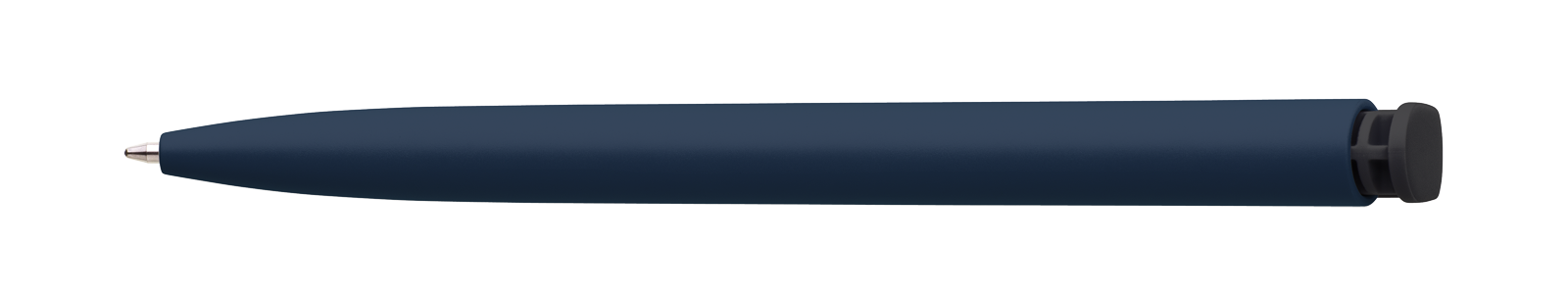 Propiska BOIA v minimalistickém designu tmavě modrého oválného těla s dynamickým tvarem černého masivního klipu. Tělo i klip nabízí velký prostor pro značení logem zákazníka. Materiál plast, náplň velkoobsahová, modře píšící. BOIA je vyráběna v České republice.