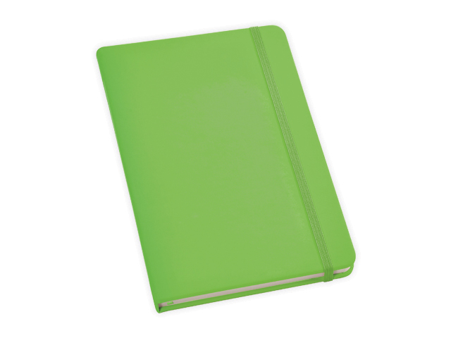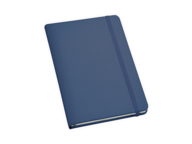 Poznámkový zápisník s gumičkou a vlepenou kapsou, 192 linkovaných stran, formát A5.