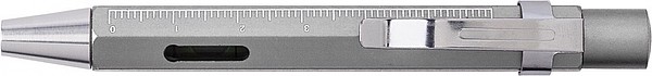 Šroubovák ve tvaru pera s 8 výměnnými bity a klipem, kov. Rozměry: 10,8 × 2,2 cm.