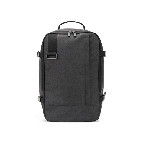 CIES. Batoh vyvinutý tak, aby splňoval rozměry požadované leteckými společnostmi, z recyklovaného polyesteru vysoké hustoty 600D, tmavě šedá