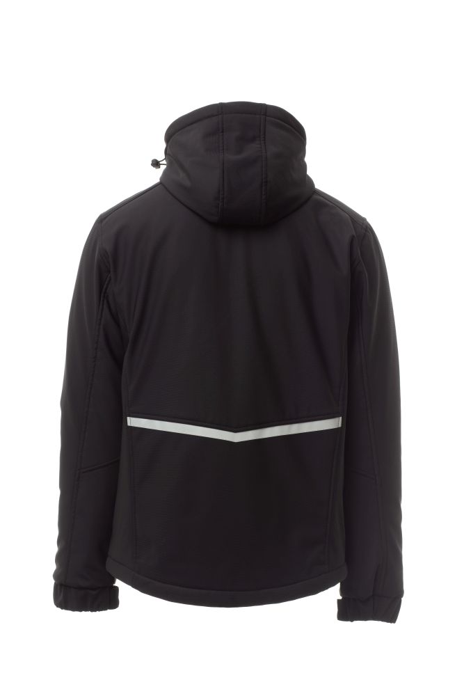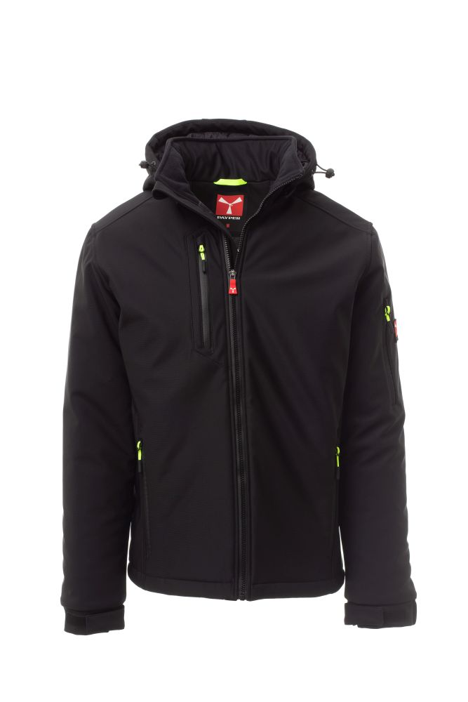WP 8000 mm H2O, WVT 5000 g/m2 24h. Pánský zateplený softshell, zapínání na zip SBS s kovovým jezdcem „semi-auto lock“ a přizpůsobeným taháčkem. Odnímatelná kapuce se stahovací šňůrkou. Vnitřní límec s flísovými bočními prvky. Reflexní pruhy na zádech a zadní straně kapuce. Elastické stahovací manžety na suchý zip. Dvě boční kapsy na zip, jedna kapsa na hrudi s voděodolným zipem a jedna kapsa na levé paži s integrovaným očkem na pero na zip. Fluorescentní taháčky. Jedna vnitřní prostřižená kapsa na suchý zip. Spodní část stažitelná pomocí přizpůsobených zarážek.