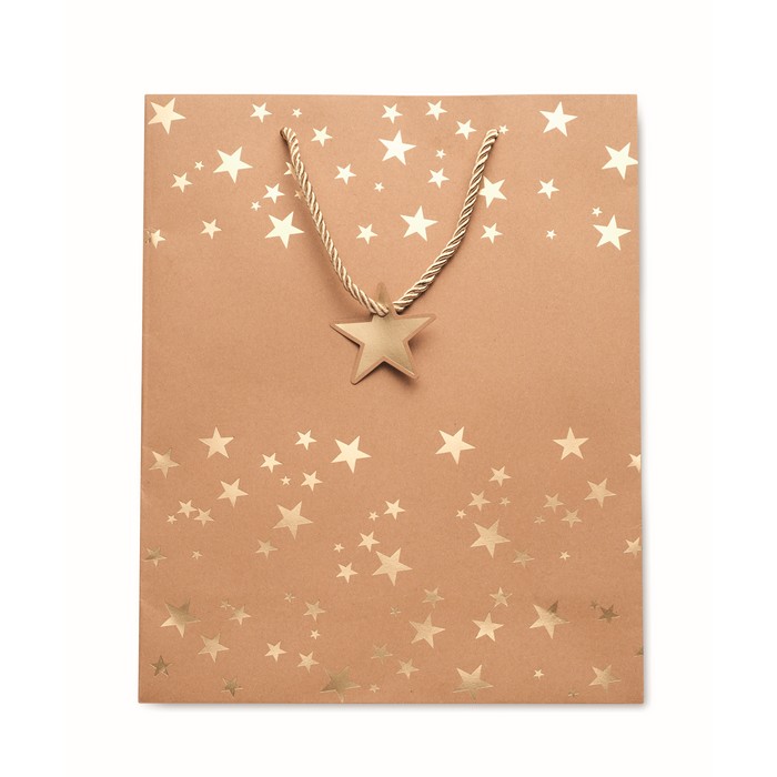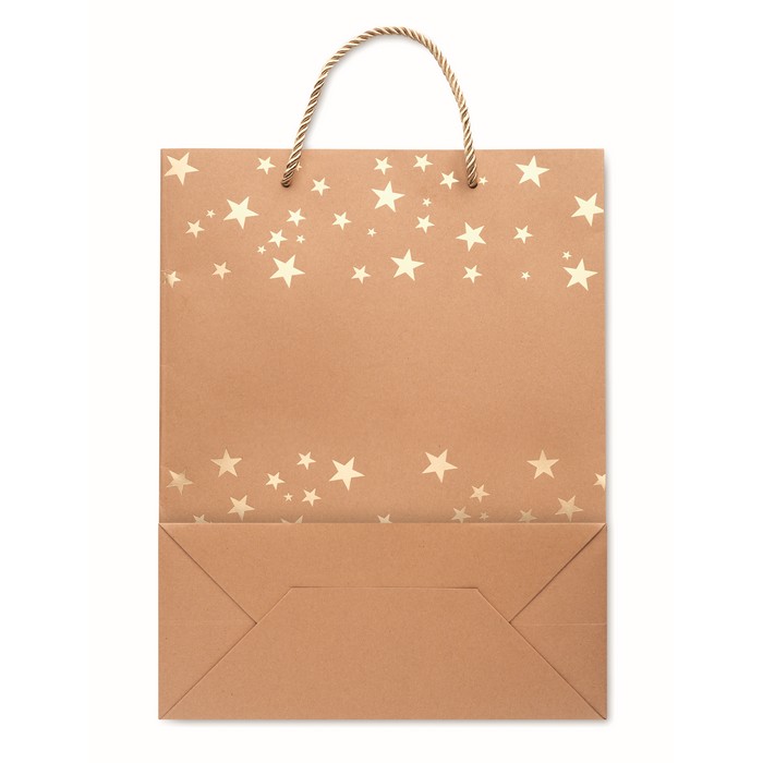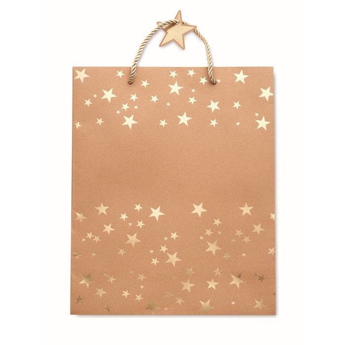 Elegantní dárková taška z kraftového papíru s vánočním vzorem. Včetně dárkové visačky. Materiál: 250 gr/m2. Rozměry: 25 x 11 x 32cm