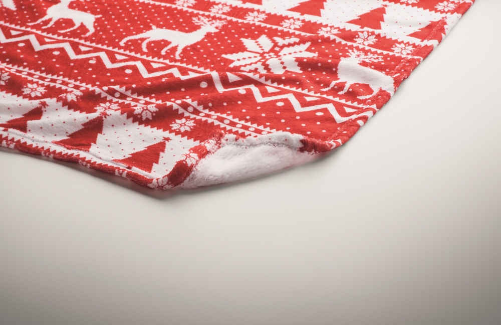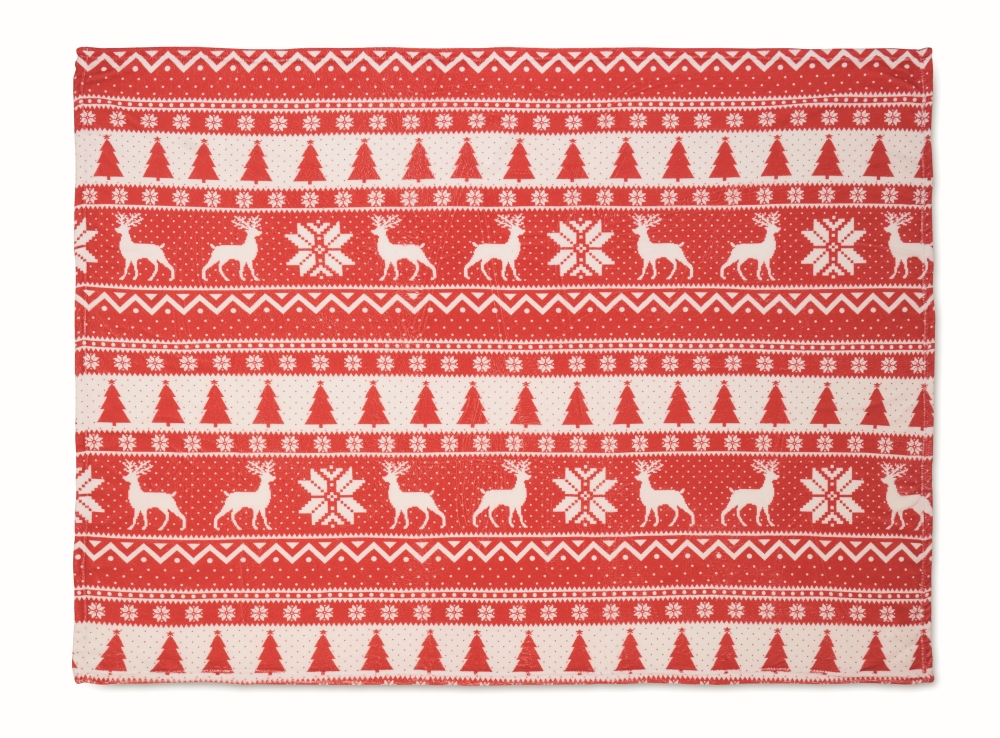Fleecová deka z RPET 190 gr/m2 se zimním vzorem. Zabalená do stuhy s kartičkou s možností potisku. Rozměry: 150 x 120 cm. Materiál: RPET