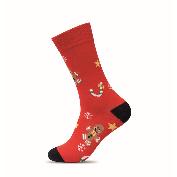 Pár vánočních ponožek ze 75 % bavlny, 23 % polyesteru RPET a 2 % elastanu. Velikost M = 38-42.Rozměry: 24,5 x 9,5cm