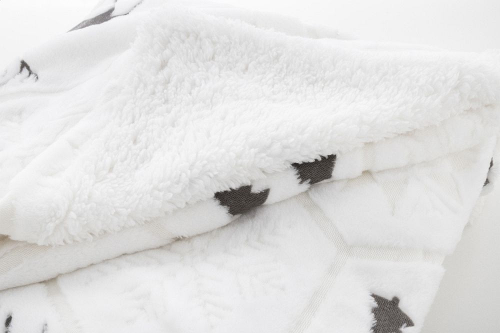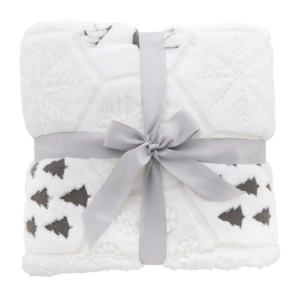 Luxusní dvouvrstvá vánoční deka z RPET s reliéfním zimním vzorem. S flanelovým fleecovým materiálem RPET 270 g/m2 a oboustrannou podšívkou z RPET sherpa fleecu 210 g/m2. Zabaleno do stuhy a tisknutelného papírového kartonu. Rozměry: 120 x 150 cm