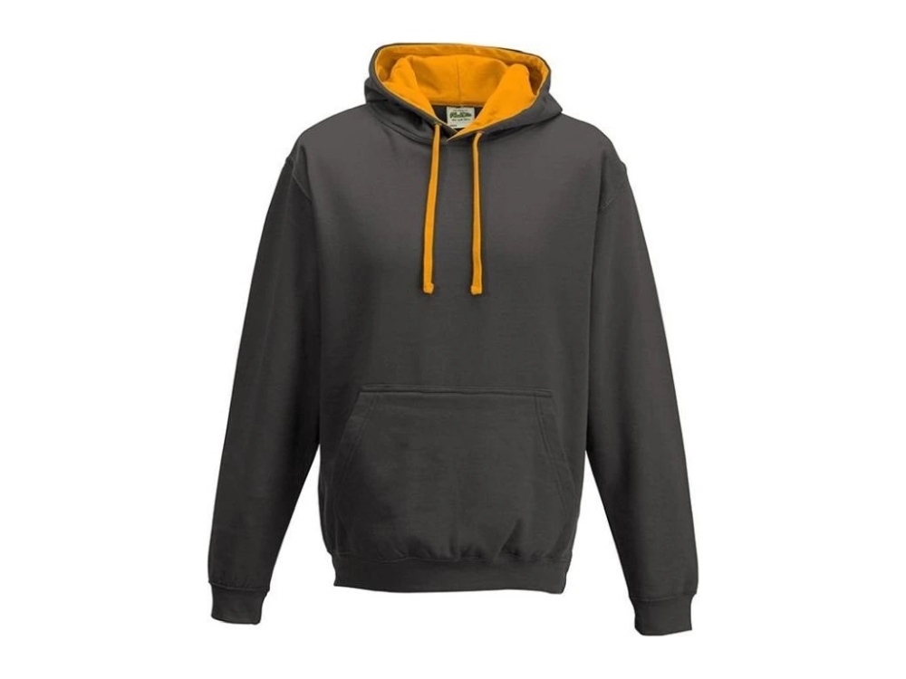 Unisex mikina s kapucí VARSITY HOODIE, tmavě šedý melír/oranžová, velikost L