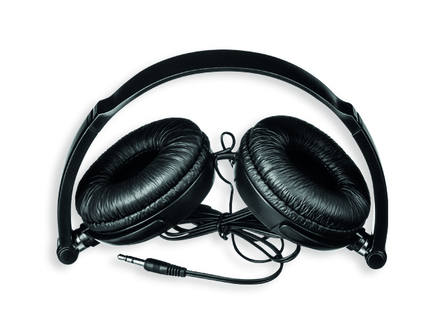 Plastová skládací nastavitelná audio sluchátka v textilním sáčku. Maximální výkon 50 mW. Jack konektor 3,5 mm, délka kabelu 1,2 m.