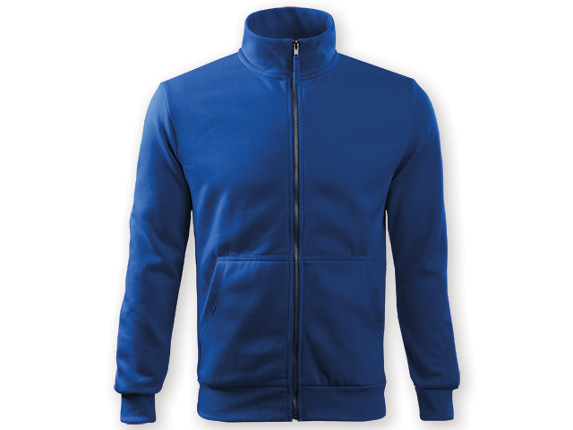 Pánská celopropínací mikina na kovový zip s dlouhým rukávem a dvěma kapsami. Límec, boční díly, spodní lem, manžety rukávů a lemy kapes jsou ze žebrovaného úpletu. Materiál 65 % bavlna a 35 % PES, 300g/m².