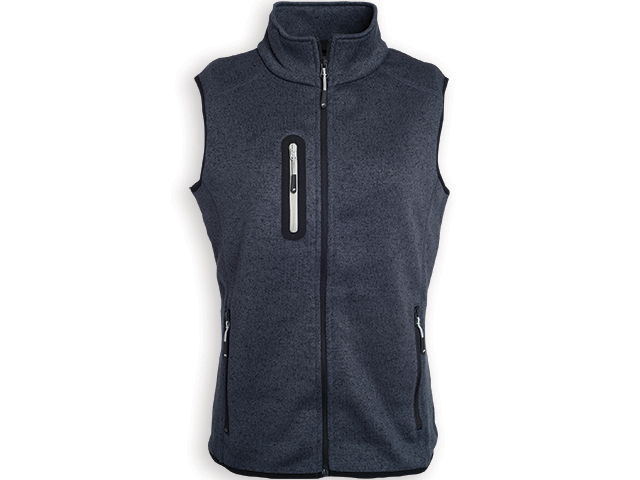 Dámská celopropínací vesta s dvěma předními kapsami a malou náprsní kapsou. Materiál 100 % PES, 280g/m².
