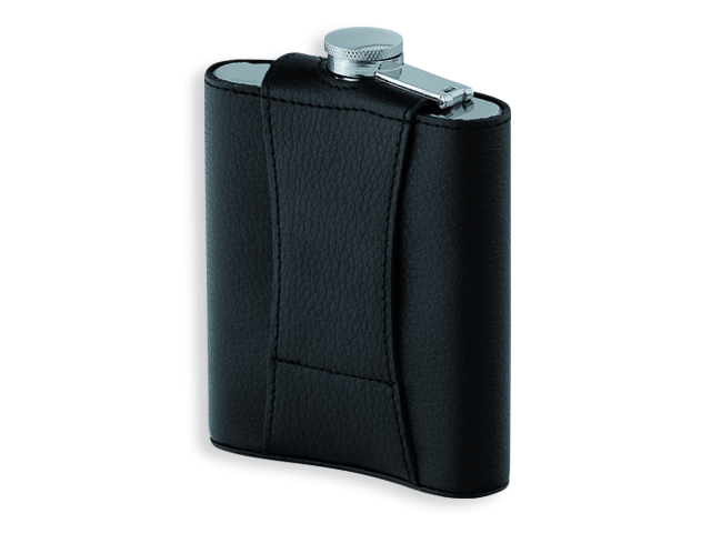 Butylka z nerez oceli v pouzdře z imitace kůže. Objem 200 ml.