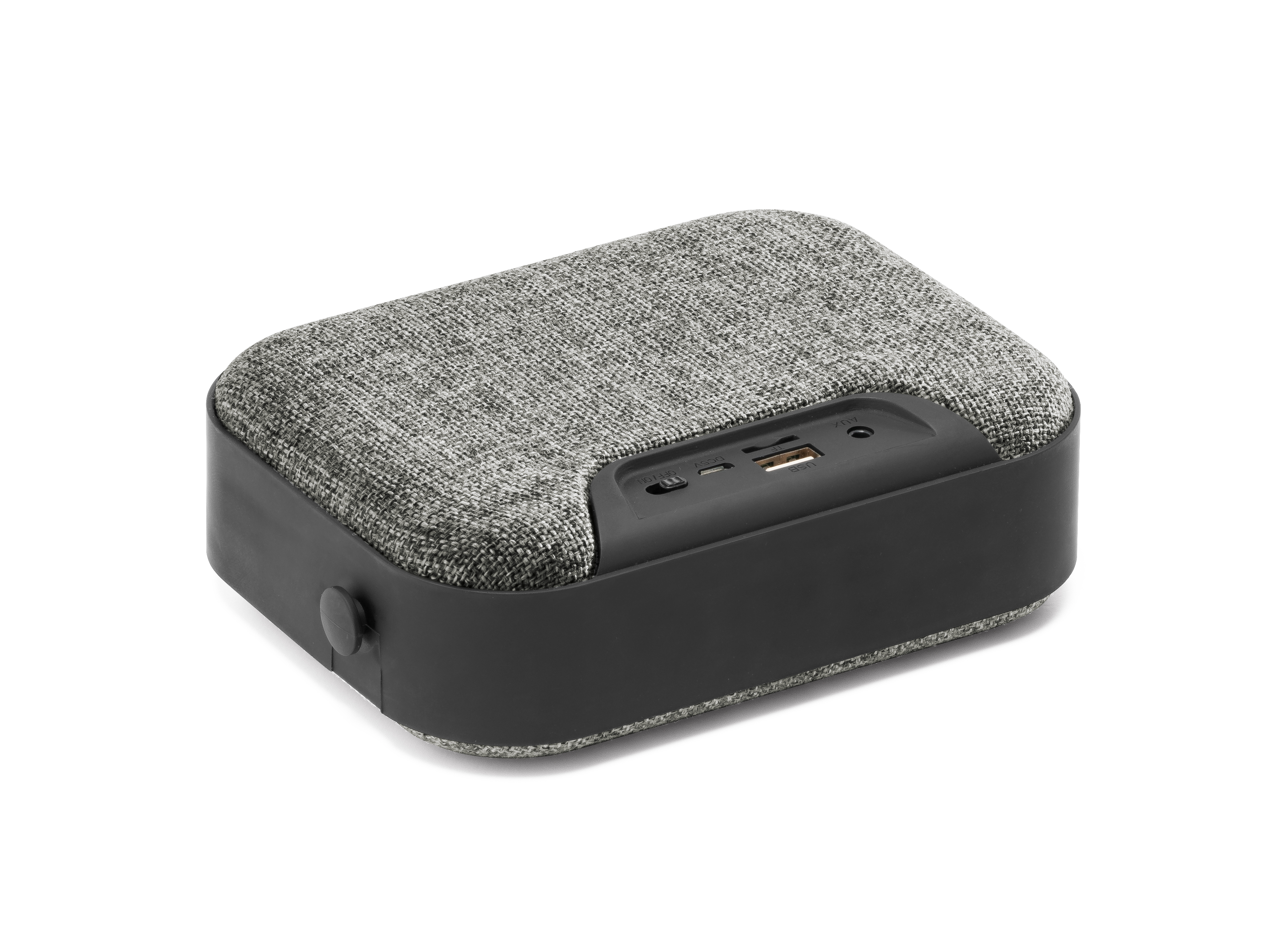 TEDS plastový bluetooth reproduktor s polyesterovou tkaninou na povrchu, Šedý melír