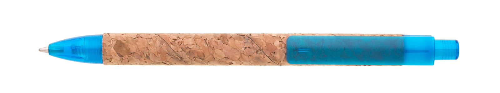 Propiska s korkovým povrchem KORK - tělo je potaženo korkem, špička, klip a cvakátko je z tyrkysového plastu.