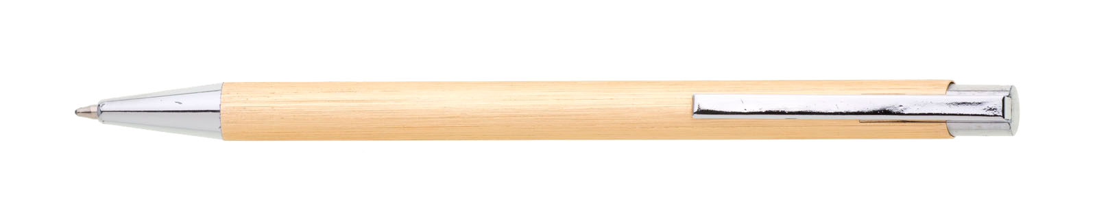 Zlatá kovová propiska s jemně rýhovaným povrchem.
