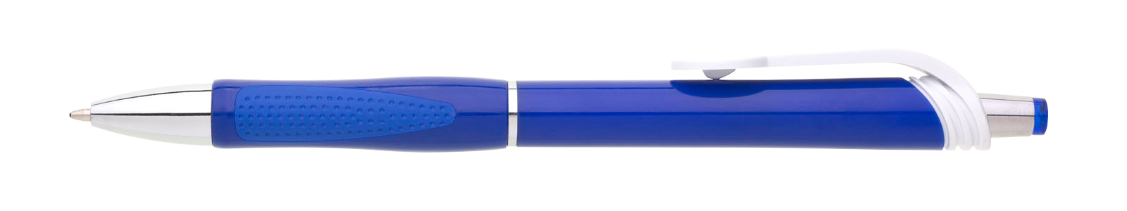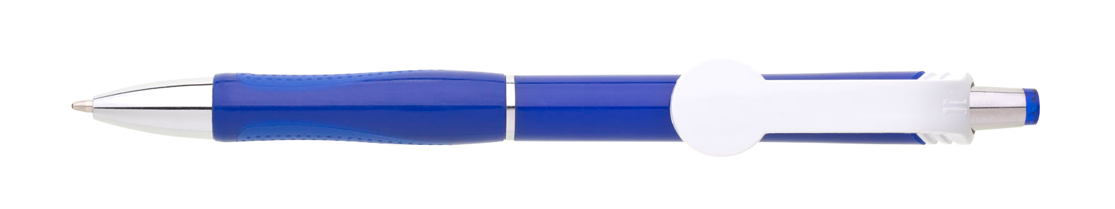Varianta oblíbené propisky s klipem zakončeným kulatým prostorem vhodným pro plnobarevný UV potisk. Gumový grip i tělo propisky jsou v modré barvě. Značka GABRIELIS.Náplň X-20, modře píšící.
