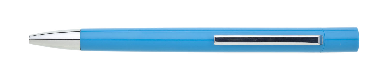 Propiska GIO s netradičním zapínáním. Plastové tělo ve světle modré barvě. KolekceDESIGN.