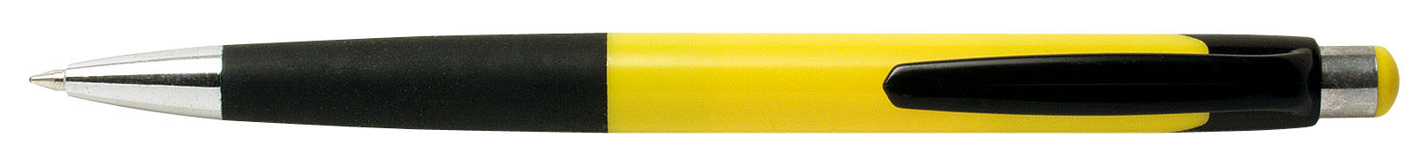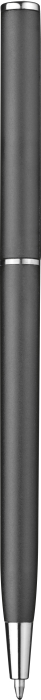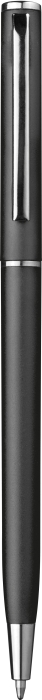 Plastové štíhlé kuličkové pero s kovovým klipem, modrá náplň. Rozměry: O 0,8 × 13,4 cm.
