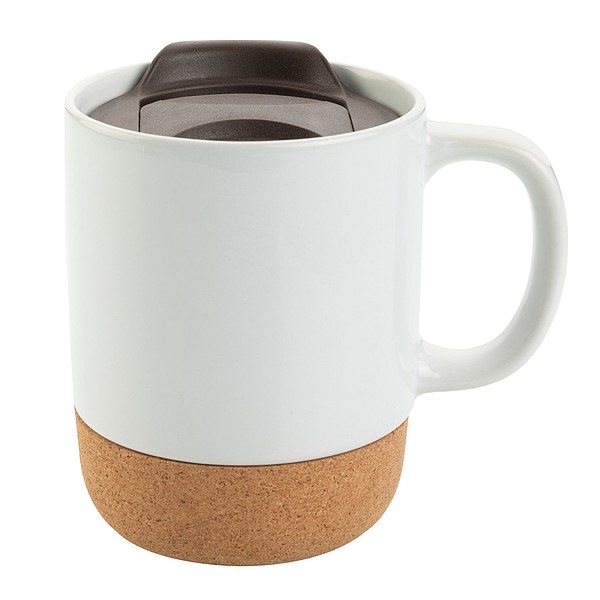 Keramický hrnek s odnímatelným korkovým dnem na magnet a plastovým víčkem. Korkové dno hrnku slouží jako podtácek a zároveň mu dodává neobyčejný vzhled. Díky plastovému víčku si svou ranní kávu můžete vzít s sebou na cestu do práce. Hrnek je vhodný na sublimační potisk. Objem 400 ml. Baleno v dárkové krabici Vanilla Season. Doporučená technologie tisku: sublimace. Maximální velikost tisku: 200 × 70 mm. Rozměry: O 8,8 × 11 cm, balení 12,1 × 12,1 × 9,5 cm. Uhlíková stopa: gCO2 e630.