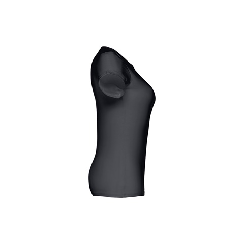 Dámské žerzejové tričko přiléhavého střihu ze 100% bavlny (190 g/m²). Barva 83: 90% bavlna a 10% viskóza. Tenký žerzejový límec se saténovým žebrováním. Dvojité prošití na rukávech a spodním lemu. Šité po stranách.Velikosti: S, M, L, XL, XXL