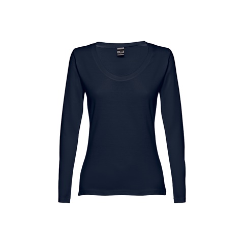Dámské žerzejové tričko s dlouhým rukávem ze 100% bavlny (150 g/m²). Barvy 194, 195: 60% bavlna a 40% polyester, barva 183: 90% bavlna a 10% viskóza. Žerzejový lem výstřihu. Dvojité prošití na rukávech a spodním lemu. Šité po stranách. Velikosti: S, M, L, XL, XXL