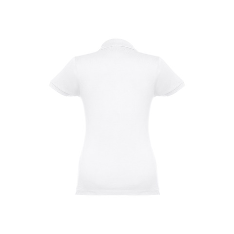 EVE WH. Dámské polo s krátkým rukávem s páskem z mykané bavlny, bílá, L