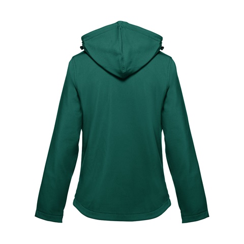 Dámská softshellová bunda s odnímatelnou kapucí. 96% polyester a 4% elastan (280 g/m²). Voduodpudivý povrch (třída III). Podšívka ze síťoviny z materiálu polar. 2 přední kapsy na zip. Diagonální náprsní kapsa na zip. Nastavitelné manžety s páskem na suchý zip. Odnímatelná kapuce se stahovací šňůrkou a páskem na suchý zip pro upevnění k límci. Zaoblený dolní okraj zadního dílu.Velikosti: S, M, L, XL, XXL