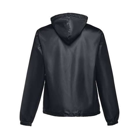 Unisex větrovka ze 100% polyesterového taftu (65 g/m²). Kapuce s brzdičkami a síťovinovou podšívkou. Postranní kapsy s plastovým zapínáním. Utahovací gumička s brzdičkami ve spodní části.Velikosti: XS, S, M, L, XL, XXL