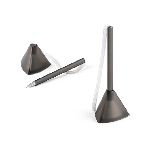 Kuličkové pero s ABS držákem a nálepkou na spodní části k umístění na hladké povrchy jako jsou stoly nebo pulty. Prodlužitelný řetízek.60 x 160 x 60 mm | Kuličkové pero: 11 x 11 x 141 mm Modrá náplň