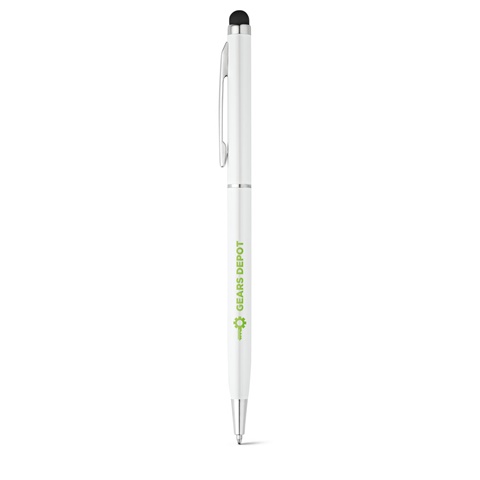 ZOE. Hliníkové kuličkové pero s otočným mechanismem a dotykovým hrotem, bílá