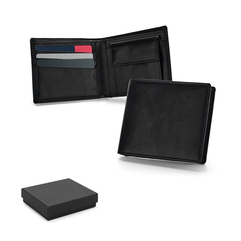 Kožená peněženka (s blokováním RFID) s kapsou na mince, kapsou na bankovky a přihrádkami na 9 karet. Peněženka je dodávaná v dárkové krabičce.110 x 92 x 13 mm | Krabička: 130 x 109 x 24 mm Kůže
