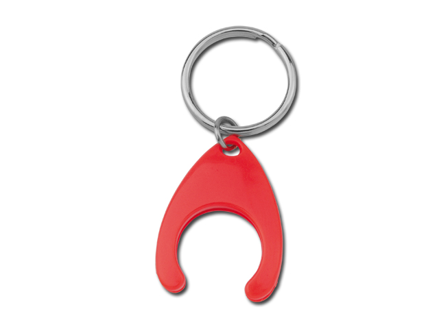 WATOH. Kulatá klíčenka z kovu a PU, červená