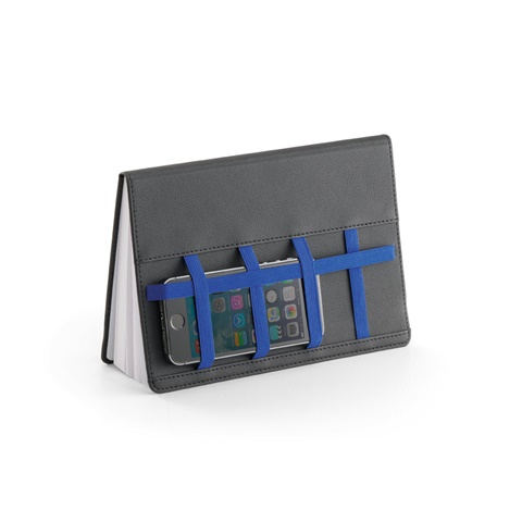 Poznámkový blok ve formátu A5 s tvrdými deskami v imitaci kůže. Tento zápisník má 160 nelinkovaných listů, elastickou gumičku a elastické držáky na pero, smartphone a karty (pero není součástí balení). Dodáváno v obalu z netkané textilie.150 x 210 mm | Obal: 185 x 240 mm Formát A5, Nelinkované listy